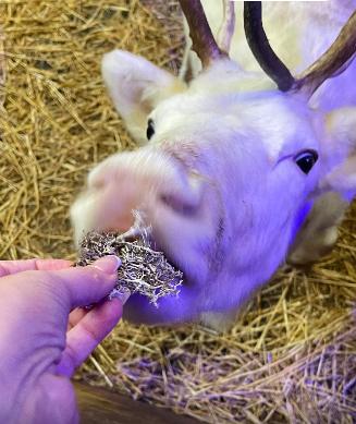 On arrival you will get a delicious hot chocolate to drink and you will receive a brief from you guide. You will then spend a magical 40mins in the company of the Reindeer, where you will get to feed them special moss and take as many pictures as possible. Your guide will tell you all about the reindeer, what they like and their happy lives on the Ranch.